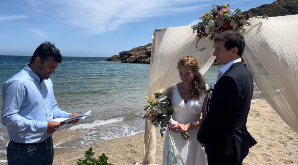 Ο Αντιδήμαρχος Διοικητικών Υπηρεσιών, Νεολαίας, Παιδείας και Αθλητισμού, κ Κωστής Λυμπερίου, ήταν αυτός που τέλεσε το μυστήριο, ο οποίος έδωσε και τις θερμότερες του ευχές στο ζευγάρι, για ευτυχία και μακροημέρευση.