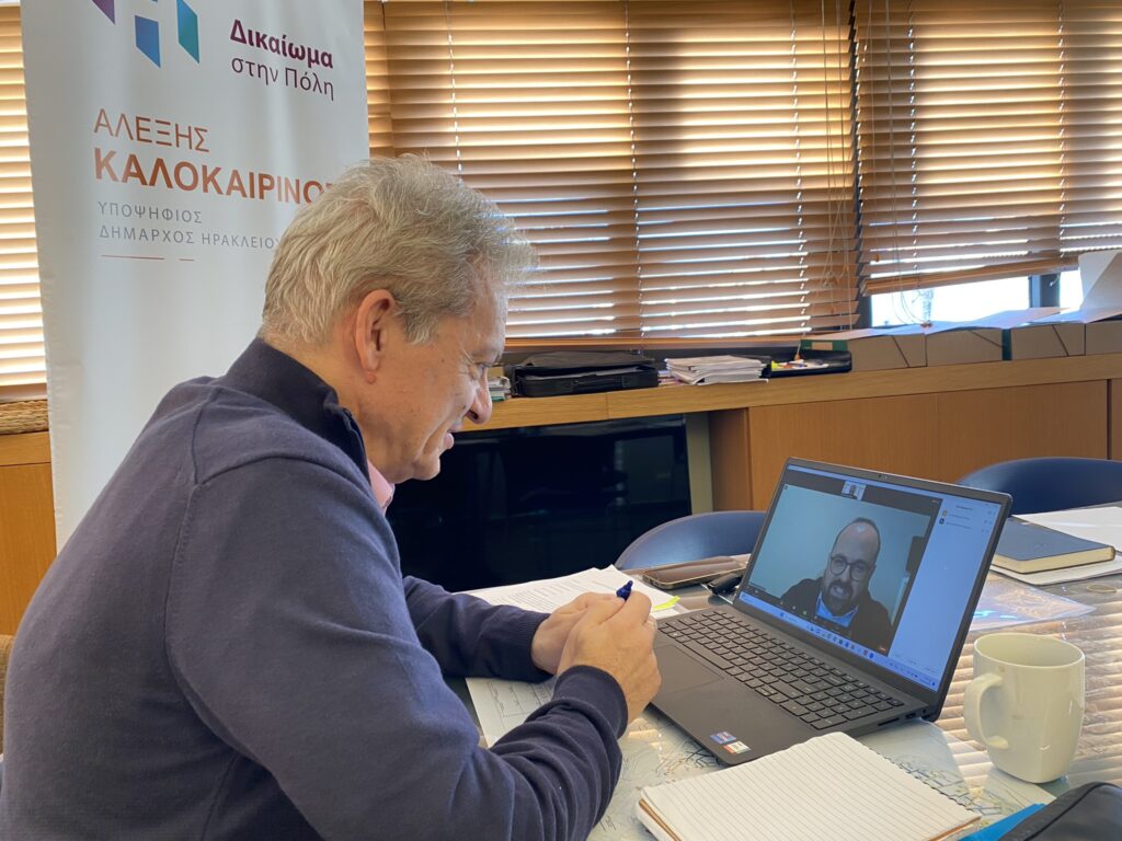 Επίσης, ο Αλέξης Καλοκαιρινός πραγματοποίησε τηλεδιάσκεψη με τους γενικούς Γραμματείς του Υπουργείου Εμπορικής Ναυτιλίας, Λιμένων, Λιμενικής Πολιτικής & Ναυτιλιακών Επενδύσεων Βαγγέλη Κυριαζόπουλο και Αιγαίου & Νησιωτικής Πολιτικής Μανώλης Κουτουλάκη, με αντικείμενο την τροποποίηση της χερσαίας ζώνης του λιμένα  Ηρακλείου και τη συνεργασία του Δήμου Ηρακλείου με τον υπό δημιουργία νέο Οργανισμό Λιμένων Νομού Ηρακλείου. Στη σύσκεψη τέθηκαν από τον εκλεγμένο Δήμαρχο Ηρακλείου όλα τα ζητήματα που αφορούν τις δυο πλευρές και την επόμενη μέρα του λιμανιού του Ηρακλείου, και συζητήθηκαν ειδικότερα ζητήματα εγκαταστάσεων που ενδιαφέρουν ιδιαίτερα τον Δήμο μετά τη νέα οριοθέτηση της χερσαίας ζώνης.
