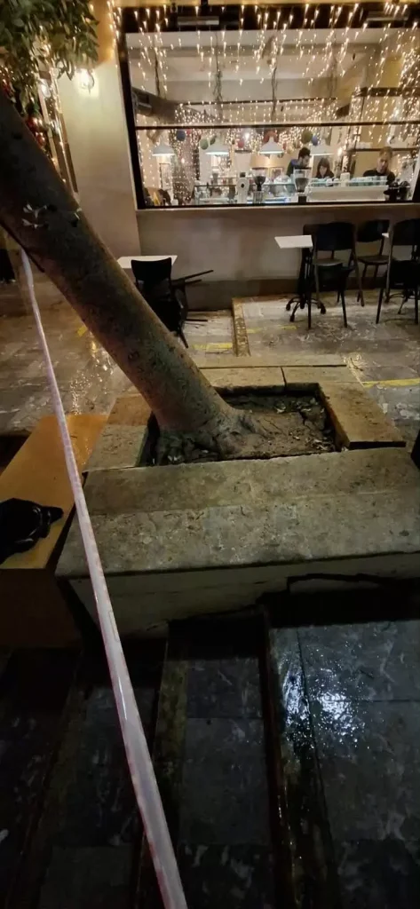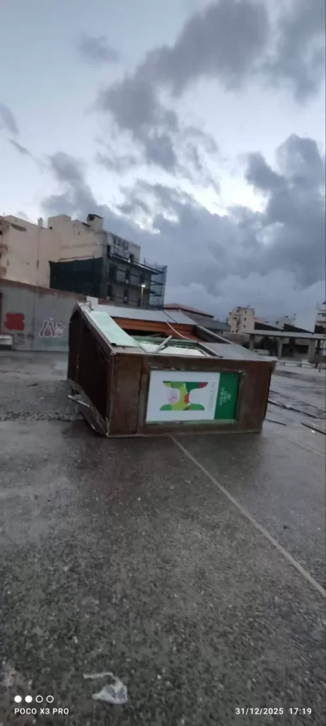 Επίσης πτώσεις δέντρων και μικροζημιές καταγράφηκαν σε διάφορα σημεία της πόλης, όπως στην παραλιακή λεωφόρο και στην Όαση.