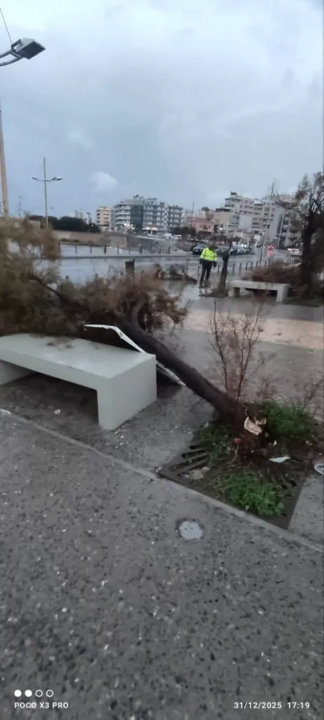 Πτώσεις δέντρων και μικροζημιές στο Ηράκλειο λόγω των έντονων ανέμων