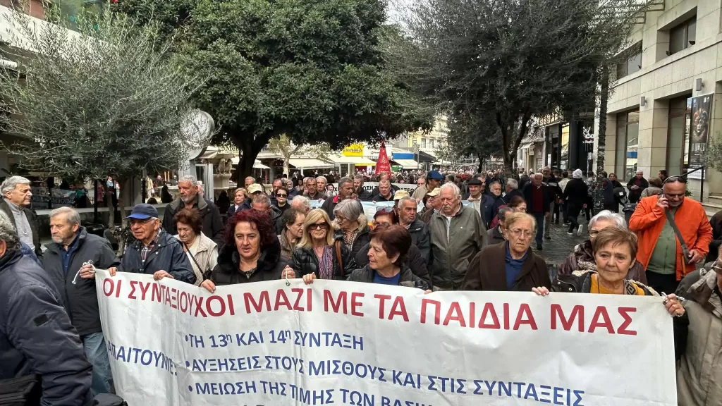Σήμερα οι συνταξιούχοι βρέθηκαν στους δρόμους στο Ηράκλειο, καθώς παλεύουν για πράγματα που θεωρούνται αυτονόητα, αλλά παρόλα αυτά δεν είναι υπαρκτά. Η συγκέντρωση πραγματοποιήθηκε στο κέντρο της πόλης. Η κινητοποίηση οργανώθηκε από ενώσεις συνταξιούχων (μεταξύ αυτών συνταξιούχοι του ΙΚΑ, του ΟΑΕΕ, πολιτικοί συνταξιούχοι, αποστράτους των Σωμάτων Ασφαλείας / Ενόπλων Δυνάμεων, καθώς και ο Πανελλήνιος Σύλλογος Συνταξιούχων ΟΤΕ).