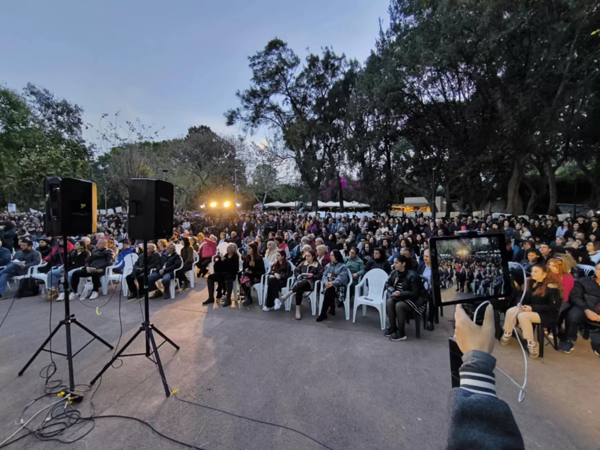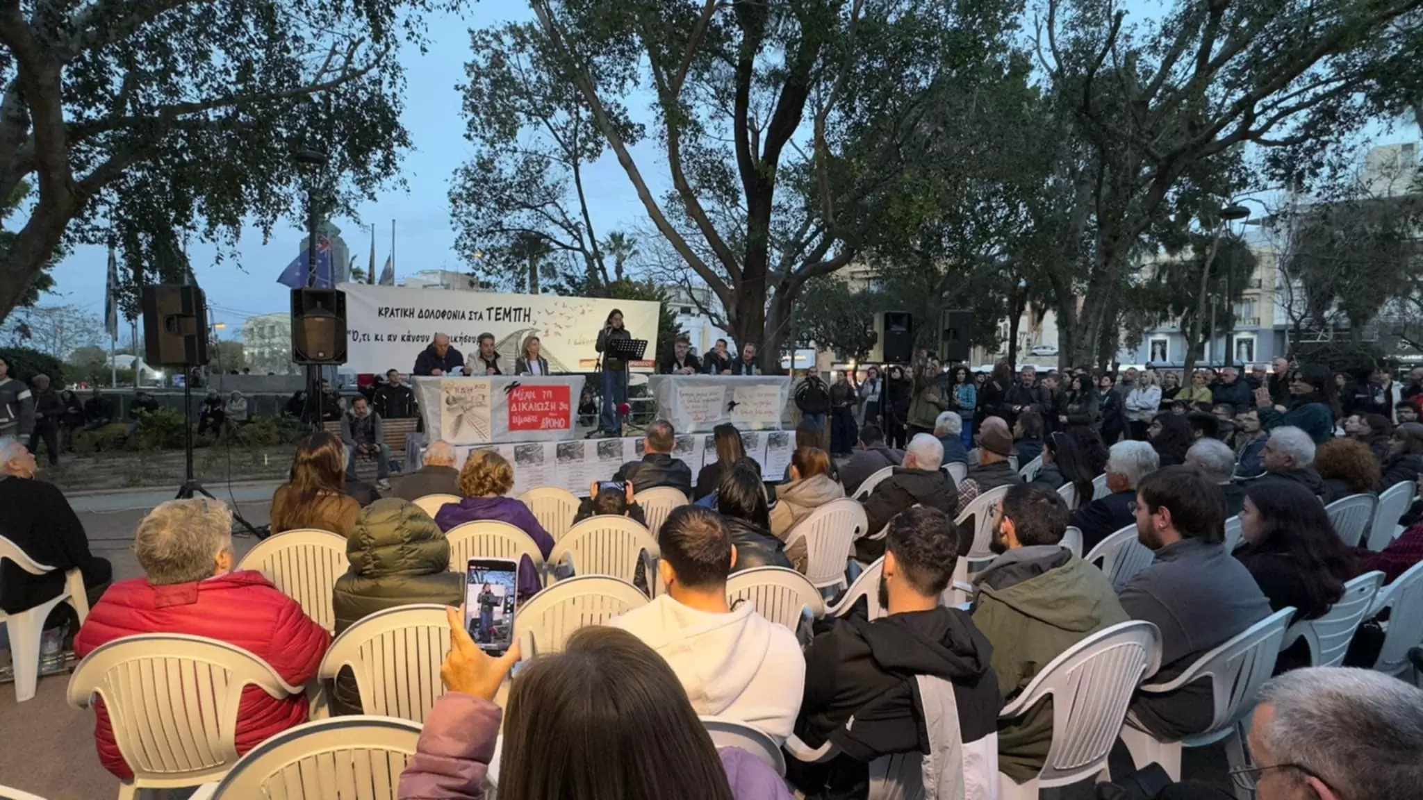 Στο Πάρκο Γεωργιάδη, στο Ηράκλειο, πραγματοποιείται αυτή την ώρα εκδήλωση για τα δύο χρόνια από το τραγικό δυστύχημα στα Τέμπη.