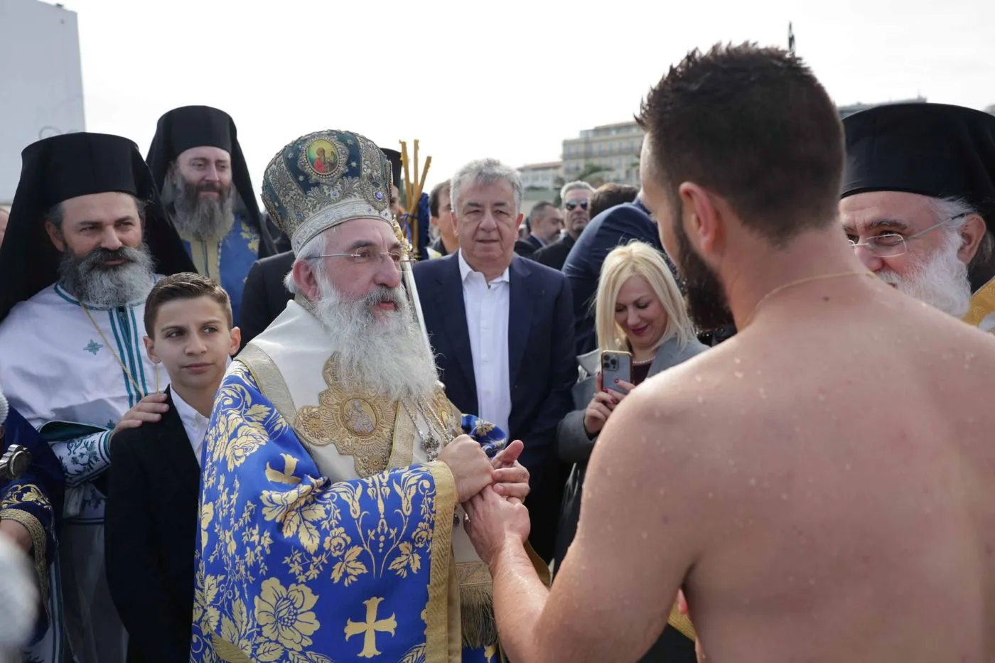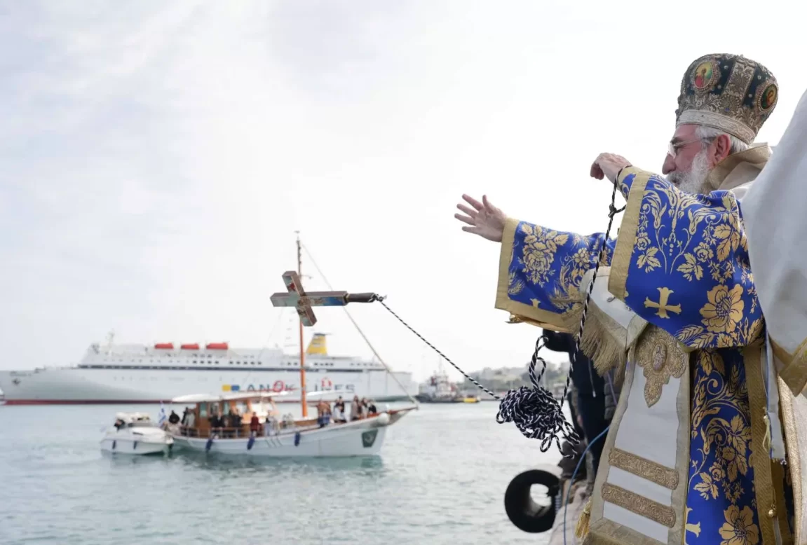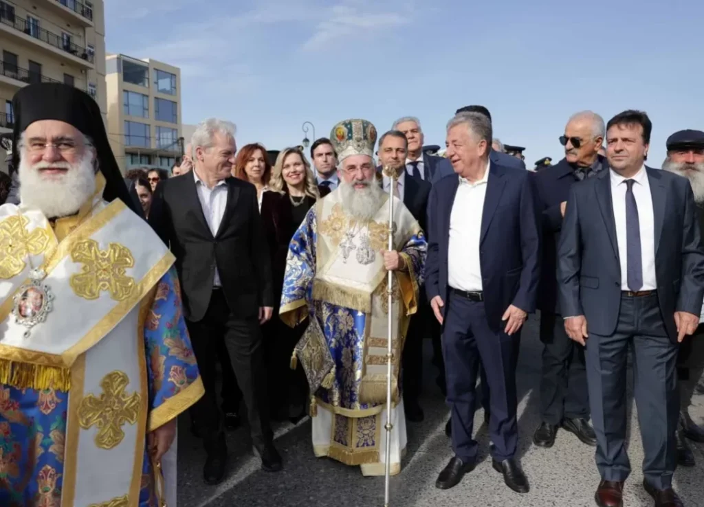 Ο Αλέξης Καλοκαιρινός παρακολούθησε στον Ιερό Καθεδρικό Ναό του Αγίου Τίτου την Πανηγυρική Αρχιερατική Θεία Λειτουργία και την Ακολουθία του Μεγάλου Αγιασμού που πραγματοποιήθηκε ιερουργούντος του Σεβασμιωτάτου Αρχιεπισκόπου Κρήτης Ευγενίου. Αμέσως μετά ο Δήμαρχος Ηρακλείου ακολούθησε την καθιερωμένη λιτανεία προς το λιμάνι, υπό τους ήχους της Φιλαρμονικής του Δήμου, όπου στη συνέχεια θα τελέστηκε ο Καθαγιασμός των υδάτων από τον Αρχιεπίσκοπο Κρήτης και η ρίψη του Σταυρού.