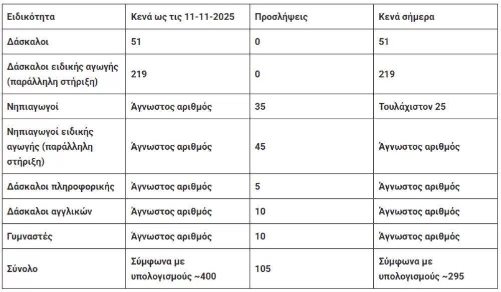 Ηράκλειο: Πάνω από 460 τα κενά σε εκπαιδευτικούς πρωτοβάθμιας και δευτεροβάθμιας εκπαίδευσης