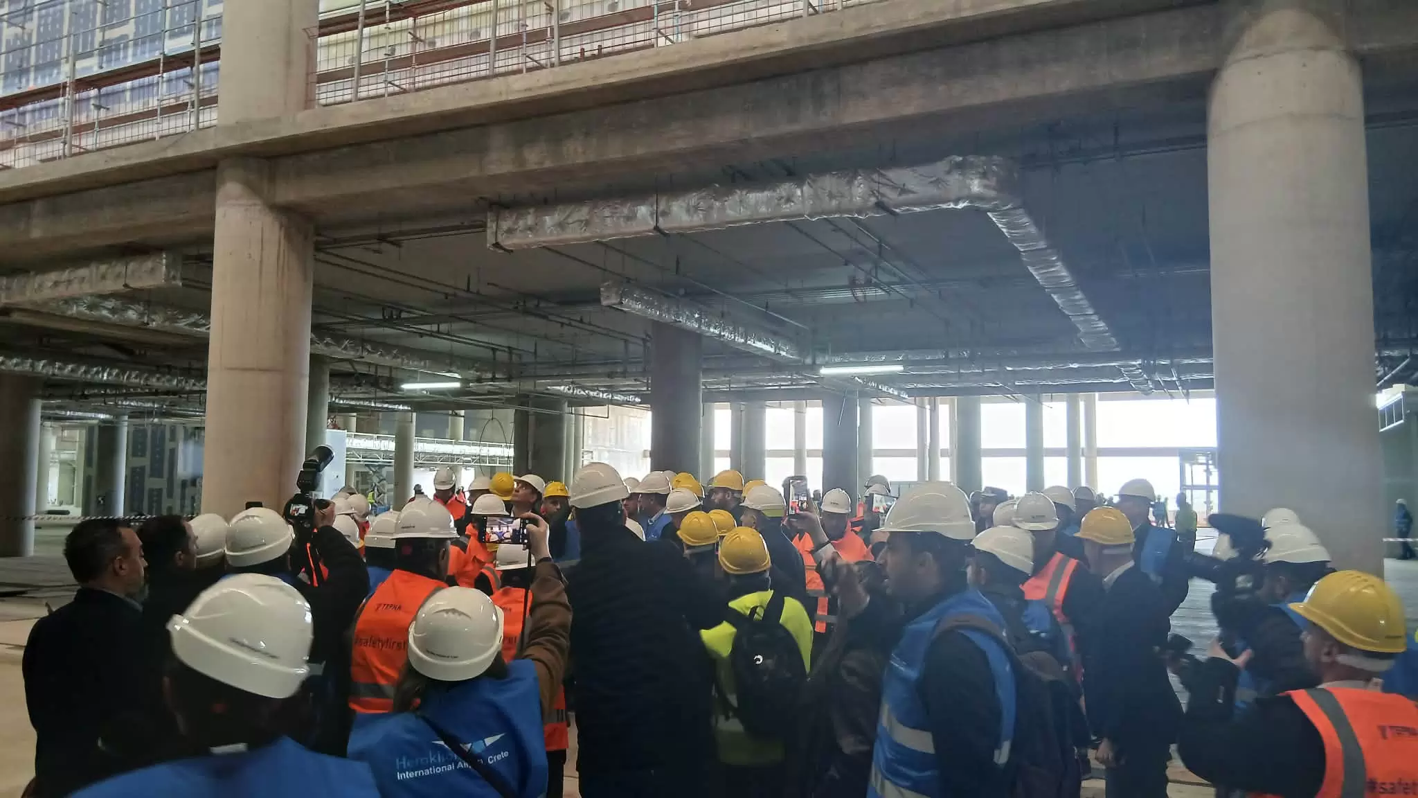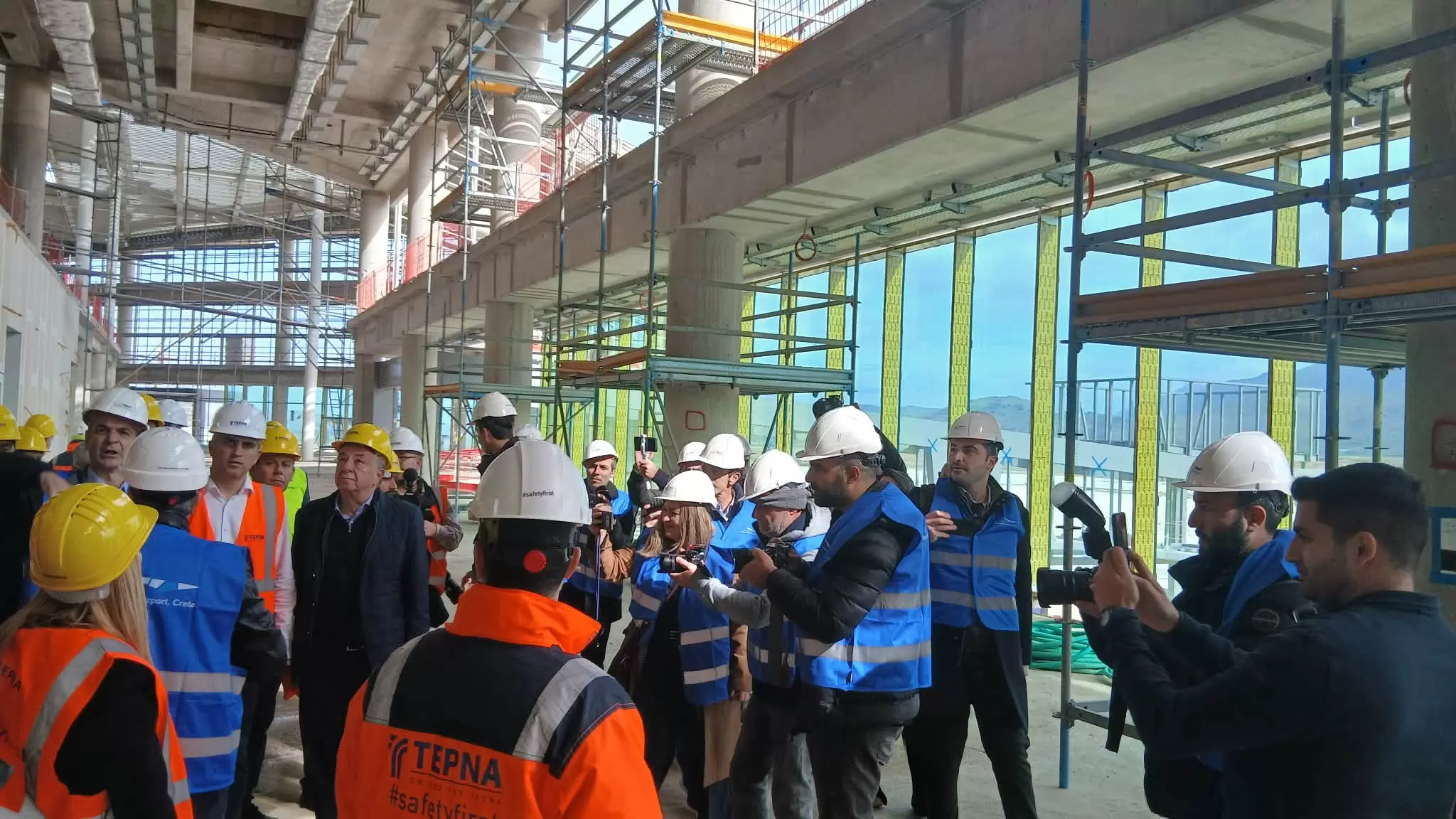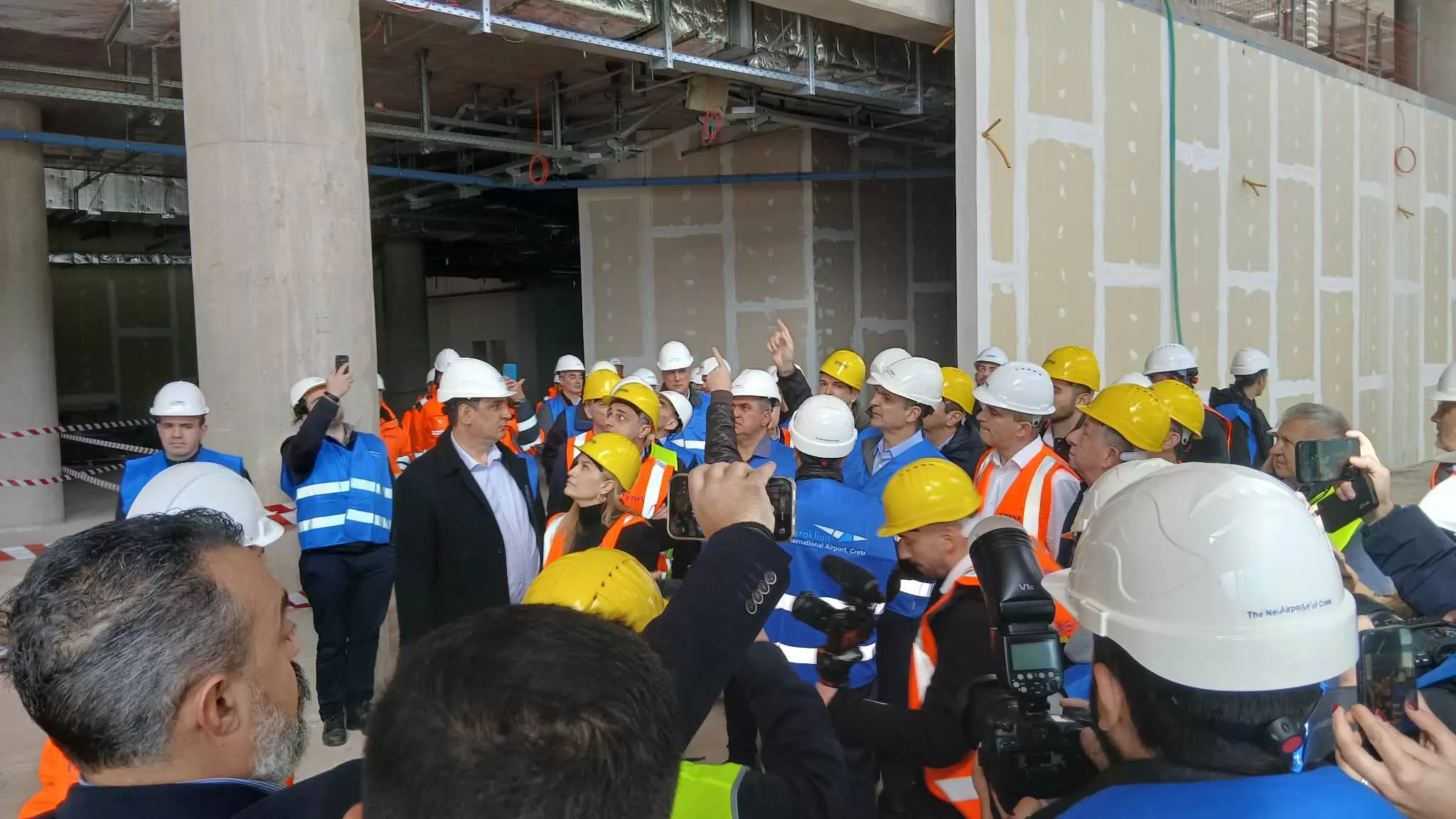 Στο εργοτάξιο του νέου διεθνούς αερολιμένα στο Καστέλι βρίσκεται ο πρωθυπουργός, Κυριάκος Μητσοτάκης.