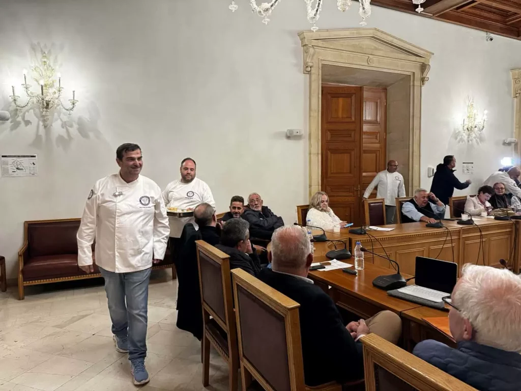 Στη συνέχεια, μια ακόμη ευχάριστη έκπληξη περίμενε τους συμβούλους καθώς κέρασμα με λουκουμάδες και παγωτό έγινε στα μέλη του Δημοτικού Συμβουλίου, από το Εργατικό Κέντρο Ηρακλείου και τον Σωματείο Μαγείρων και Ζαχαροπλαστών αν. Κρήτης.