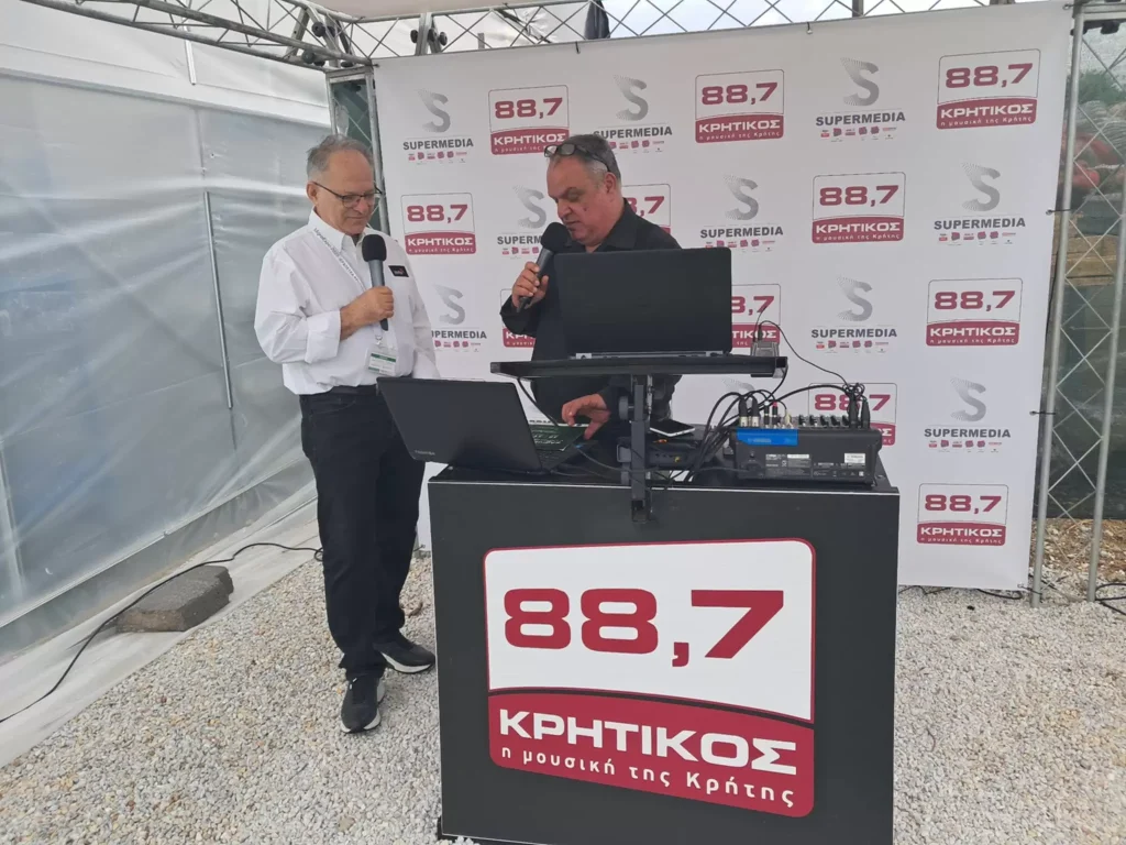 Στον Κρητικό 88.7, που έχει το δικό του στούντιο στην έκθεση, μίλησαν ο Δρ. Νίκος Κανόπουλος από την Brite Solar, η Αναστασία Δρουγκάκη από τη Nilfisk, ο Μιχάλης Πλατής από τονν agroαναπτυξιακή και ο Στέργιος Λογοθετίδης από την OET.