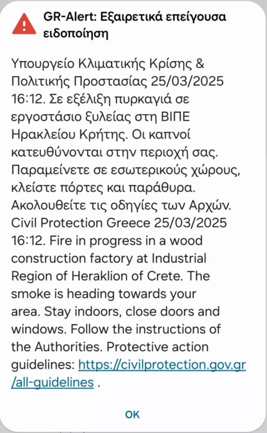 Ήχησαν, μάλιστα, μηνύματα από το 112 στους πολίτες, που βρίσκονται κοντά στην περιοχή για να παραμείνουν σε εσωτερικούς χώρους με κλειστές πόρτες και παράθυρα.