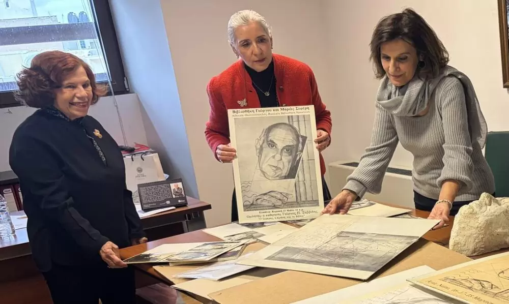 Το αρχείο, στο οποίο συμπεριλαμβάνονται μεταξύ άλλων βιβλία, φωτογραφίες, προσχέδια, αφίσες και προτομή κεφαλής του Γιώργου Σεφέρη παρέλαβε η Αντιδήμαρχος Πολιτισμού Ρένα Παπαδάκη-Σκαλίδη και η Προϊσταμένη της Βικελαίας Δημοτικής Βιβλιοθήκης Στεφανία Τερζάκη.