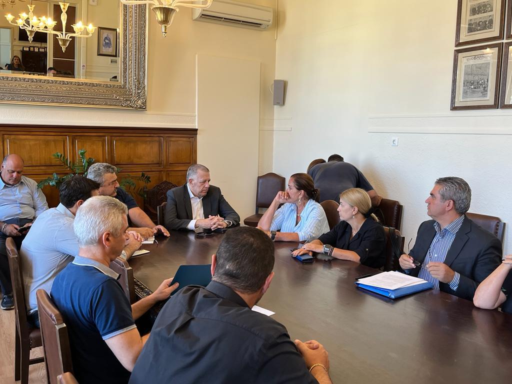 Τέλος, επισκέφθηκαν μαζί τα γραφεία της Περιφερειακής Ενότητας Χανίων, όπου πραγματοποίησαν συνάντηση εργασίας με τον Αντιπεριφερειάρχη κ. Νίκο Καλογέρη, κατά της διάρκεια της οποίας είχαν την ευκαιρία να συζητήσουν για όλα τα θέματα αρμοδιότητας του Υφυπουργού που αφορούν στο Νομό.