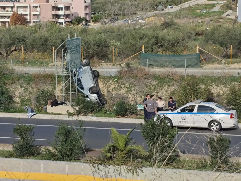 Αρχική»Κρήτη»Ντούμπαρε αυτοκίνητο στην Εθνική Οδό στο ύψους του κόμβου για Φοινικιά