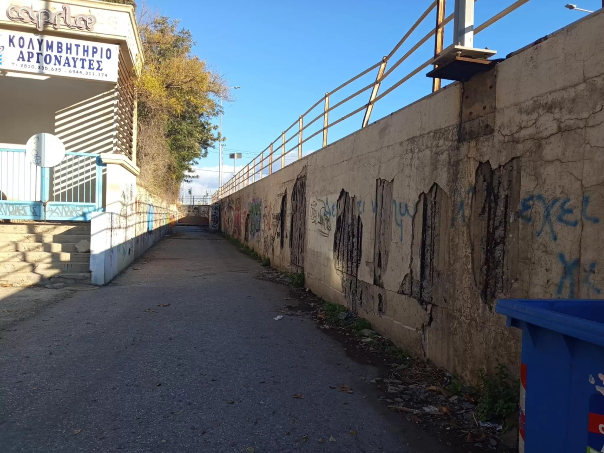 Στο τέλος του δρόμου, όπως φαίνεται και στη φωτογραφία που ακολουθεί, υπάρχουν φρεάτια τα οποία φράζουν διαρκώς και υπάρχει μεγάλος κίνδυνος πλημμυρικών καταστάσεων. Δημιουργούνται, δε και πολλοί σκοτεινοί χώροι που τις νύχτες χρησιμοποιούνται από χρήστες ουσιών, με τους κατοίκους αλλά και τους περαστικούς από την πλευρά της παραλιακής, να φοβούνται να κυκλοφορήσουν.