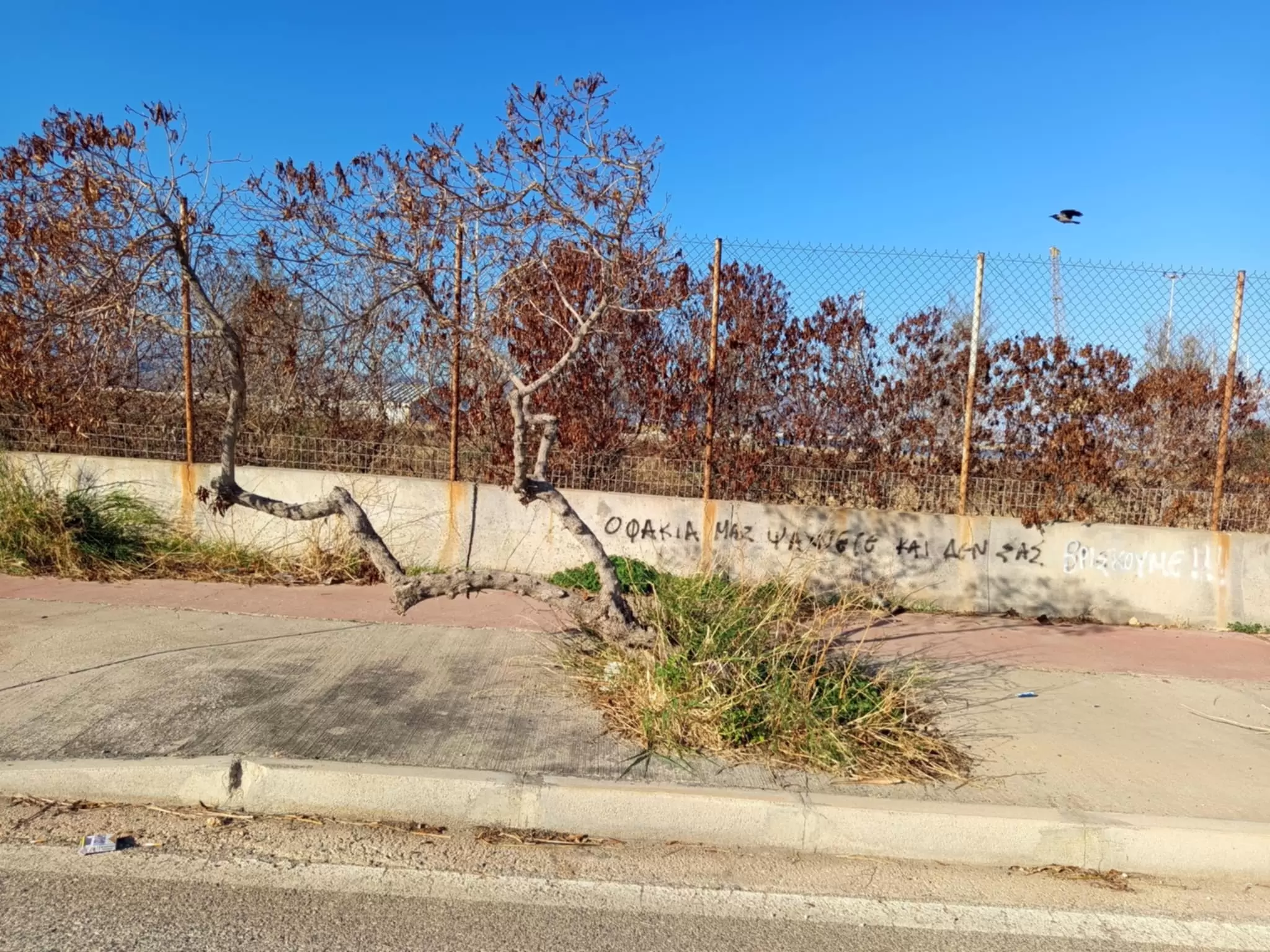 Είναι χαρακτηριστικό της κατάστασης, ότι μία τεράστια έκταση με δέντρα, έχει μετατραπεί σε κρανίου τόπο, λόγω του γεγονότος ότι τα δέντρα έχουν ξεραθεί και επικρατούν τα ξερόχορτα. Όπως είπαν οι περιπατητές, πριν από έξι μήνες ήταν… η τελευταία φορά που αυτά ποτίστηκαν κι αυτό παρότι υπάρχει δεξαμενή που μάλιστα έχει μέσα νερό!