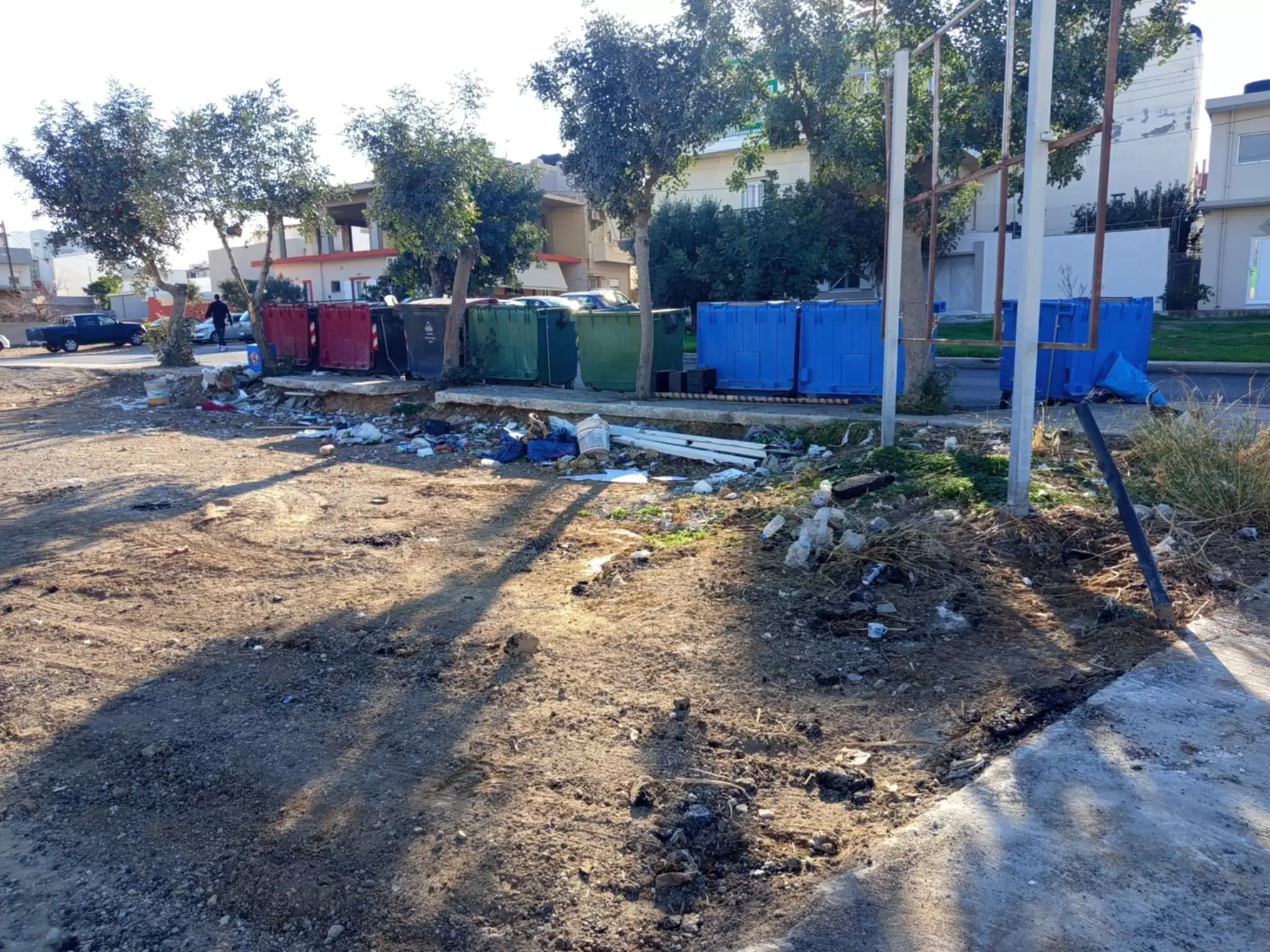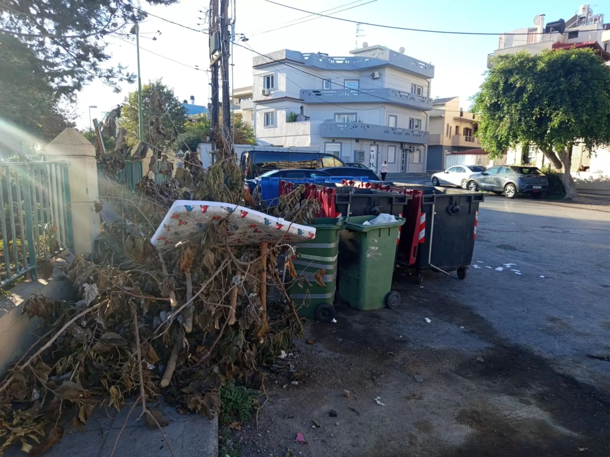 Από την άλλη είσοδο του πάρκου, μάλιστα, όπως έχει καταγραφεί και φωτογραφικά, υπάρχουν πολλά κλαδιά συσσωρευμένα, σκουπίδια και μπάζα δίπλα στους κάδους.