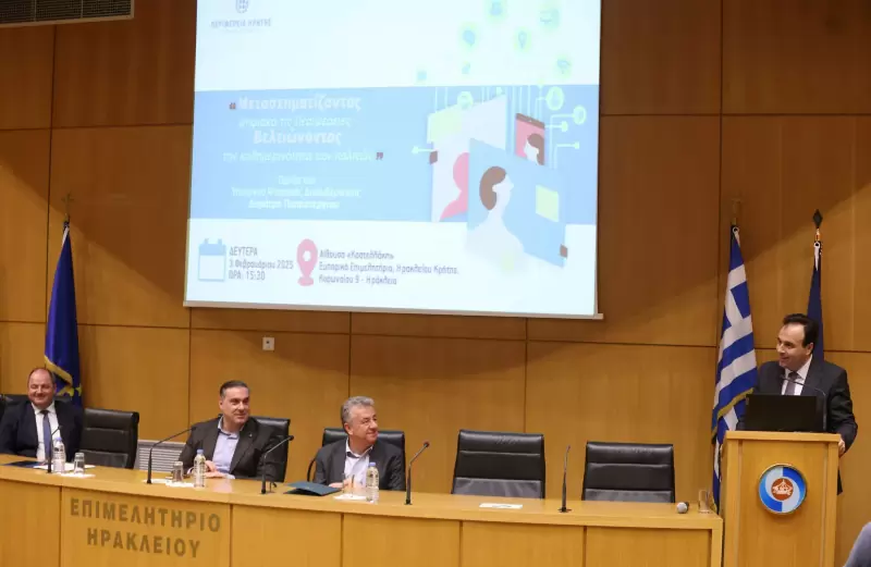 «Η ψηφιακή μετάβαση για την Περιφέρεια Κρήτης έχει επίκεντρο τον πολίτη», τόνισε ο Περιφερειάρχης Κρήτης Σταύρος Αρναουτάκης στην εκδήλωση που οργάνωσε η Περιφέρεια Κρήτης, με κεντρικό ομιλητή τον Υπουργό Ψηφιακής Διακυβέρνησης Δημήτρη Παπαστεργίου στο Επιμελητήριο Ηρακλείου.