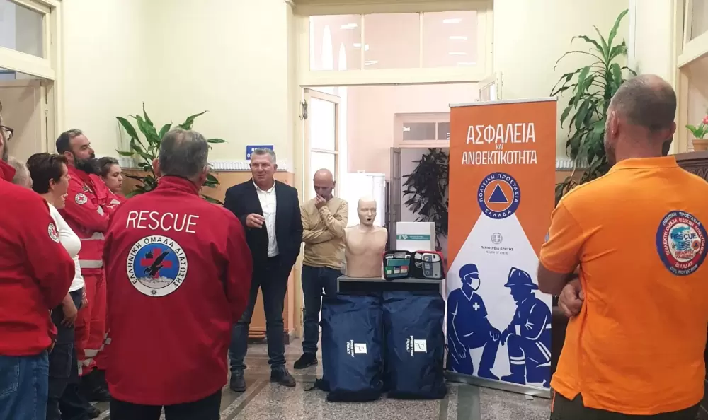 Στο πλαίσιο των εκπαιδευτικών δράσεων του προγράμματος «ΖΩΗ» της Περιφέρειας Κρήτης, πραγματοποιήθηκε η παράδοση εκπαιδευτικού εξοπλισμού, ενός εκπαιδευτικού προπλάσματος και ενός εκπαιδευτικού απινιδωτή ανά εθελοντική ομάδα στην ΠΕ Χανίων.