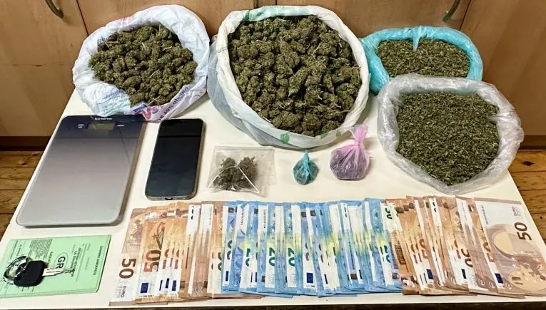 1 κιλό κάνναβης, ζυγαριά ακριβείας και το χρηματικό ποσό των 2.740 ευρώ ως προερχόμενο από την διακίνηση ναρκωτικών ουσιών όπως και ένα κινητό τηλέφωνο.