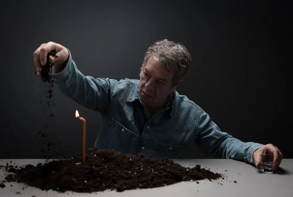 Ο Γιάννης Τσορτέκης ενδύεται τα πάθη του ήρωα και επιχειρεί μια διαδρομή μνήμης και εξαγνισμού. Στέκει πάνω από τον ανοιχτό τάφο της μάνας του, σε μια άκρη του νεκροταφείου, που ονομάζεται επίσης Σαρμάντζα. Το μουσικό οργανικό πλαίσιο του Γιώργου Μαυρίδη, συνοδεύει με αρχέτυπα ακούσματα της απώλειας μέσα στο απόκοσμο σκηνικό τόπο φθαρτότητας του Πάρι Μέξη.