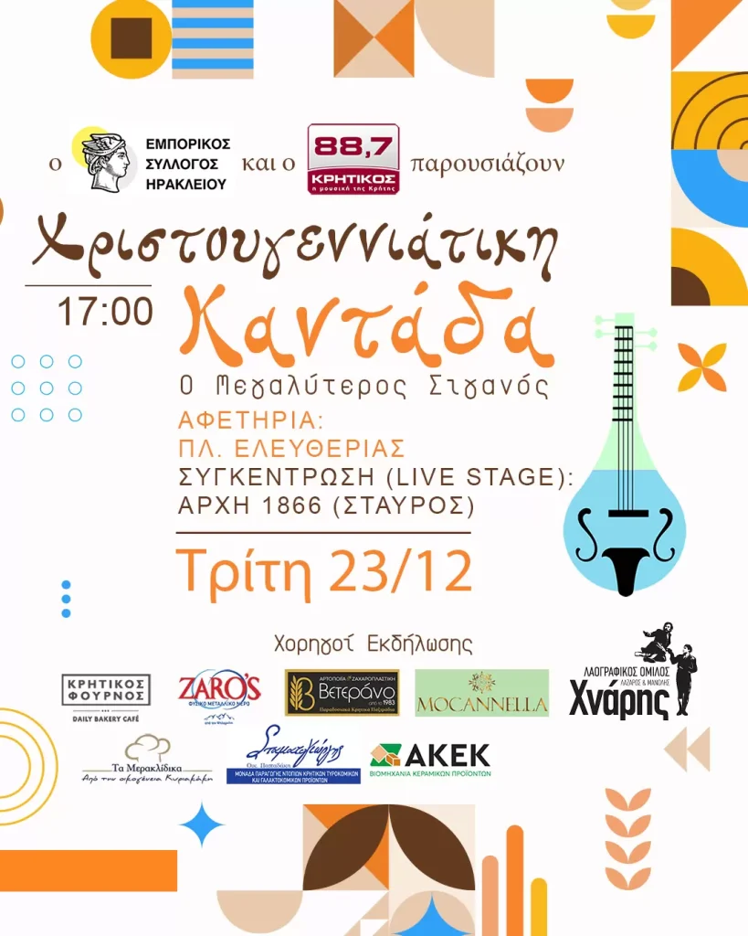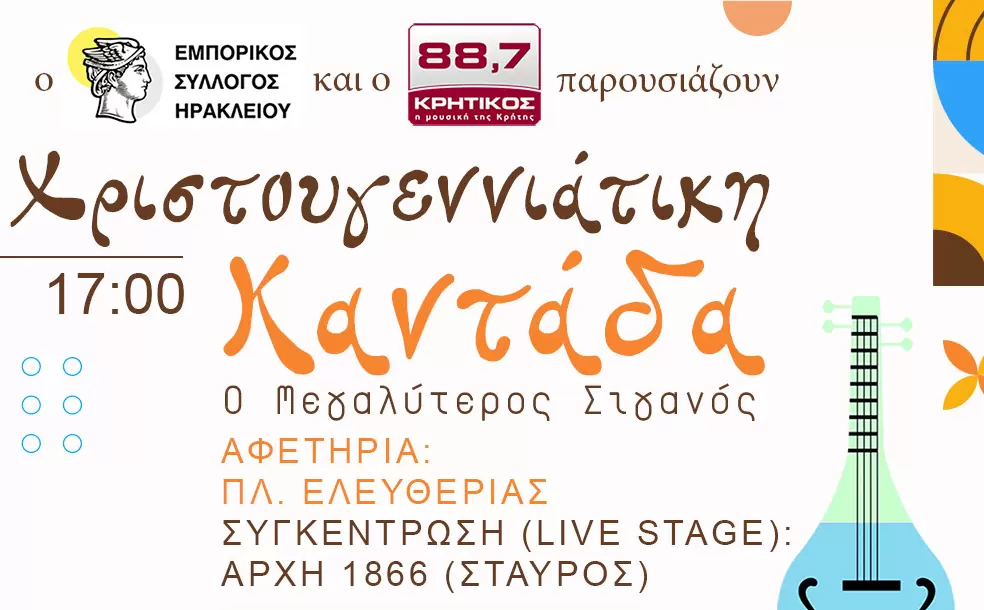 Η αντίστροφη μέτρηση για τη μεγάλη στιγμή φτάνει… Στις 5 το απόγευμα ο Κρητικός 88.7 και ο Εμπορικός Σύλλογος Ηρακλείου διοργανώνουν τη Χριστουγεννιάτικη καντάδα.
