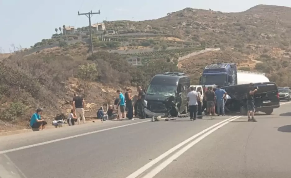 Σοβαρό τροχαίο ατύχημα σημειώθηκε πριν λίγο στο ΒΟΑΚ, στην Αγία Πελαγία, καθώς συγκρούστηκαν δύο ταξί μίνι βαν.