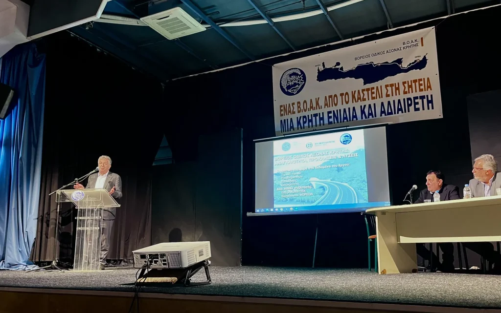 Κοινός στόχος της Περιφέρειας και των φορέων της Κρήτης είναι να διασφαλιστεί η ωριμότητα και η υλοποίηση του Βόρειου Οδικού Άξονα Κρήτης από την μία άκρη έως την άλλη του νησιού, όπως συμφωνήθηκε στην ημερίδα που έγινε στο «Πολύκεντρο» Σητείας με θέμα: «Βόρειος Οδικός Άξονας Κρήτης: Αναγκαιότητα, Προκλήσεις και Προοπτικές», με τη συμμετοχή εκπροσώπων της Τοπικής και Περιφερειακής Αυτοδιοίκησης, του τεχνικού κόσμου, τοπικών φορέων και πολιτών της περιοχής.