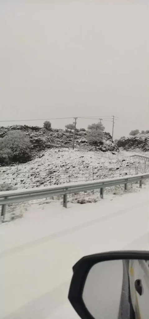 Η ψυχρή εισβολή που βρίσκεται σε εξέλιξη έδωσε εικόνες λευκών τοπίων σε πολλές περιοχές του νησιού, όπως είναι το Οροπέδιο Λασιθίου, ο Ομαλός στα Χανιά, τ’ Ανώγεια, αλλά και σε μέρη με χαμηλότερο υψόμετρο.