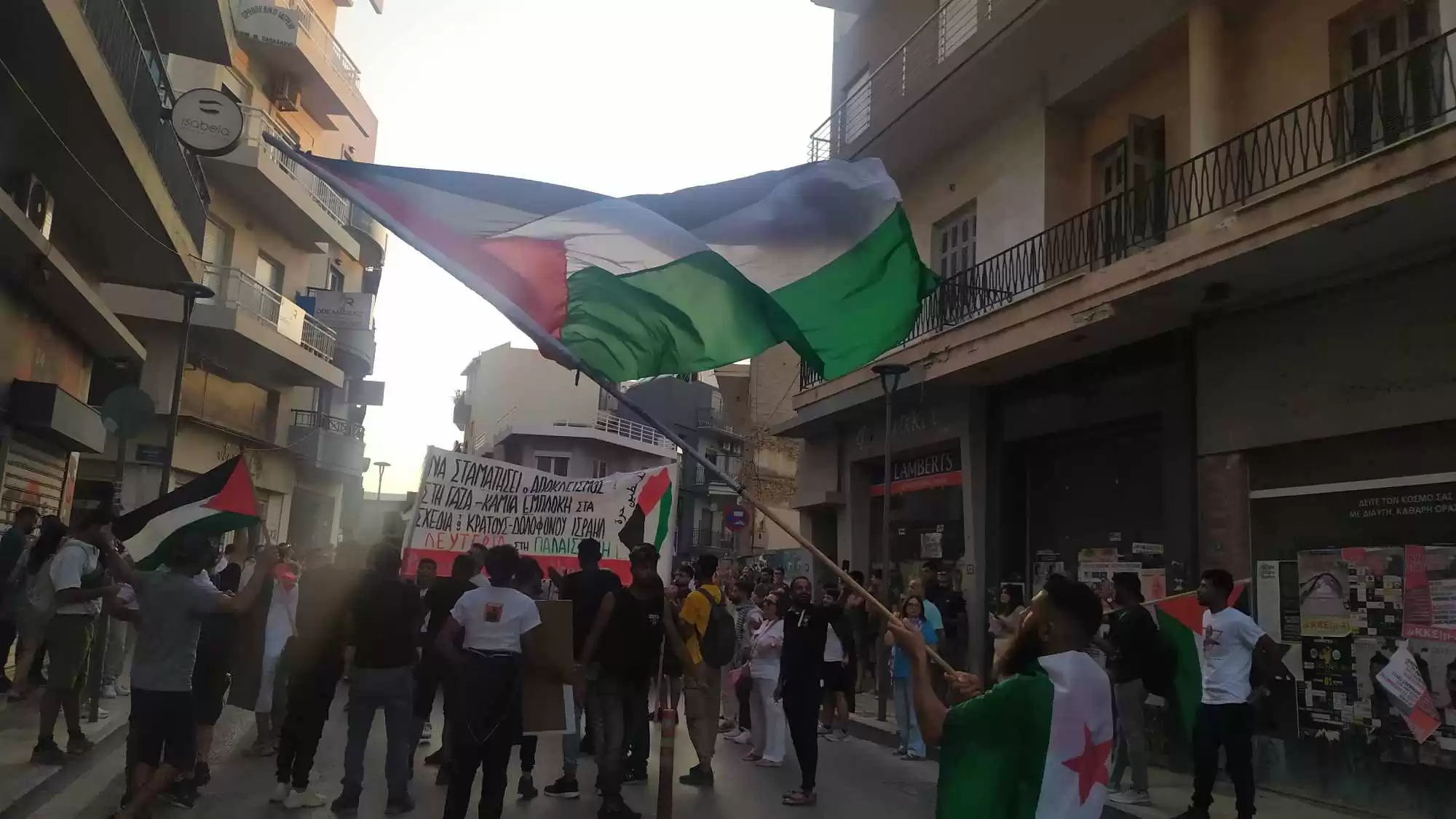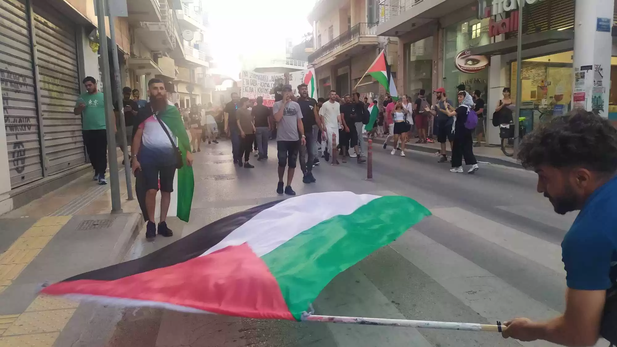 Ακολούθησε πορεία στους κεντρικούς δρόμους της πόλης, με συνθήματα υπέρ της παλαιστινιακής αντίστασης και κατά του πολέμου. Αντίστοιχες συγκεντρώσεις έγιναν και σε σε πολλές πόλεις της Ελλάδας, μεταξύ των οποίων τα Χανιά και η Ιεράπετρα.