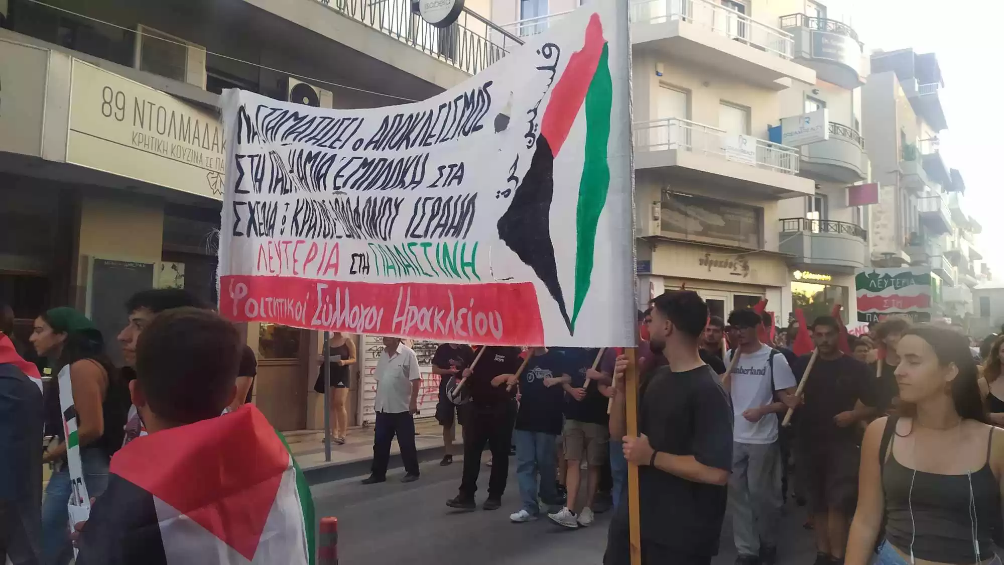 Συγκέντρωση αλληλεγγύης υπέρ του παλαιστινιακού λαού πραγματοποιήθηκε σήμερα στο Ηράκλειο, στο πλαίσιο της Ημέρας Παγκόσμιας Δράσης για την Παλαιστίνη, με τη συμμετοχή δεκάδων πολιτών, σωματείων, συλλόγων και κοινωνικών συλλογικοτήτων.