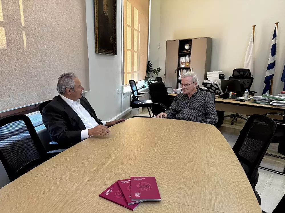 Με τον Αντιπεριφερειάρχη Τεχνικών Έργων Περιφέρειας Κρήτης Νίκο Σκουλά συναντήθηκε στη Λότζια ο Δήμαρχος Ηρακλείου Αλέξης Καλοκαιρινός. Στο πλαίσιο της στενής συνεργασίας της Περιφέρειας Κρήτης και του Δήμου Ηρακλείου, Αλέξης Καλοκαιρινός και Νίκος Σκουλάς συζήτησαν για αναγκαία έργα και παρεμβάσεις που σχετίζονται με το Εθνικό Οδικό Δίκτυο του Δήμου Ηρακλείου και άπτονται των αρμοδιοτήτων της Διεύθυνσης Τεχνικών Έργων της Περιφέρειας Κρήτης. Η συνεργασία των δυο πλευρών συνεχίζεται, με γνώμονα την βελτίωση των συνθηκών οδικής ασφάλειας και της ποιότητας ζωής κατοίκων και επισκεπτών.