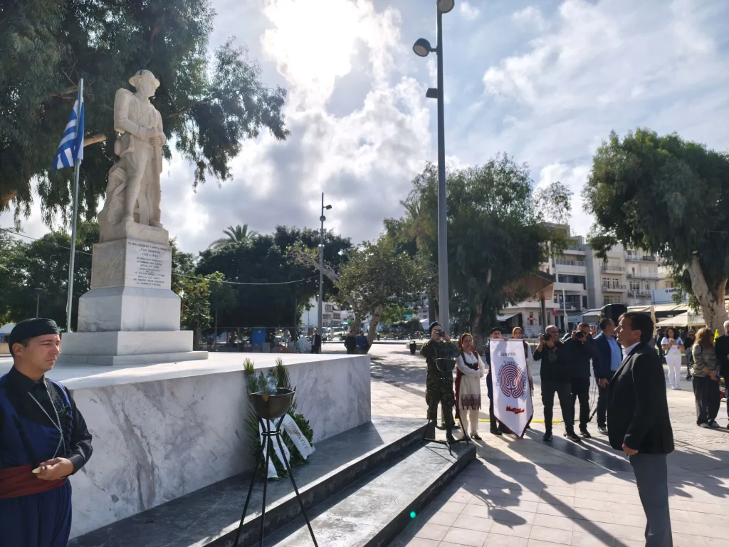 Την επιμνημόσυνη δέηση τέλεσε ο Θεοφιλέστατος Επίσκοπος Κνωσού κ. Μεθόδιος Βερνιδάκης, ενώ στεφάνια κατέθεσαν οι βουλευτές Ηρακλείου της Ν.Δ. Ελευθέριος Αυγενάκης, του ΣΥΡΙΖΑ Χάρης Μαμουλάκης, ο Αντιπεριφερειάρχης Ηρακλείου Νίκος Συριγωνάκης, ο Δήμαρχος Ηρακλείου Αλέξης Καλοκαιρινός, εκπρόσωποι στρατιωτικών αρχών, σωμάτων ασφαλείας, κομμάτων, οργανώσεων αποστράτων και φορέων.