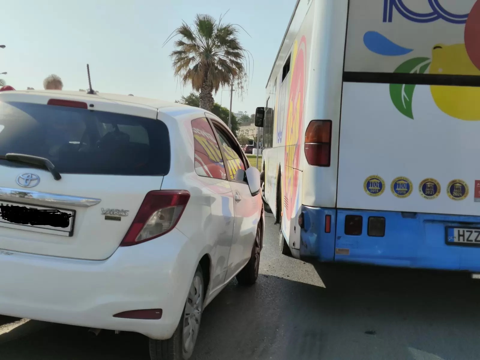 Εφιαλτικές στιγμές έζησαν οι οδηγοί που βρέθηκαν το πρωί στο κυκλικό, στο ύψος του ΟΛΗ, αφού Ι.Χ. δεν  εκτίμησε σωστά την πορεία του, βρήκε στο πλάι αστικό λεωφορείο και… σκαρφάλωσε πάνω στο σιντριβάνι, που βρίσκεται στο σημείο.