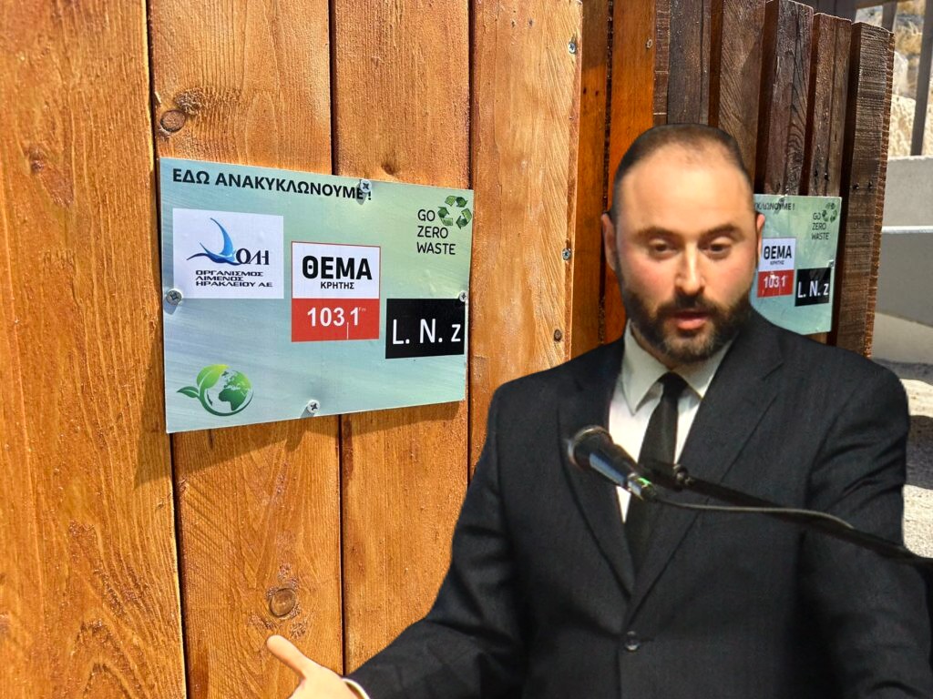 Έχουμε κάνει κι ένα δεύτερο βήμα προκειμένου να ευαισθητοποιήσουμε ανθρώπους και να τους παραδειγματίσουμε στην πράξη. Οι άνθρωποι δεν δέχονται κάτι αν δεν δουν πώς κάτι μπορεί να γίνει. Σκεφτήκαμε να πάρουμε παλιά υλικά από την βιομηχανία οίνου και να τοποθετήσουμε με τη βοήθεια και του δικού σας σταθμού κάποιους κάδους ανακύκλωσης σε ένα εμβληματικό κατ’ εμέ σημείο που είναι το Ενετικό Φρούριο του Κούλε. Σκοπός είναι οι κάτοικοι του Ηρακλείου και οι επισκέπτες να καταλάβουν πως υπάρχει κυκλική οικονομία και υπάρχει η λογική της βιωσιμότητας».