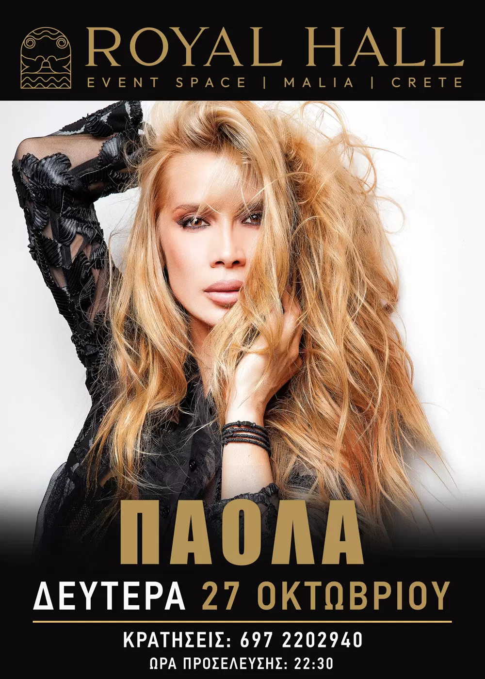 Η Πάολα, η αγαπημένη λαϊκή ερμηνεύτρια έρχεται τη Δευτέρα 27 Οκτωβρίου 2025 για μια και μόνο εμφάνιση στο Royal Hall στα Μάλια, το οποίο λειτουργεί υπό τη νέα διεύθυνση του Ζαχαρία Α. Χνάρη.