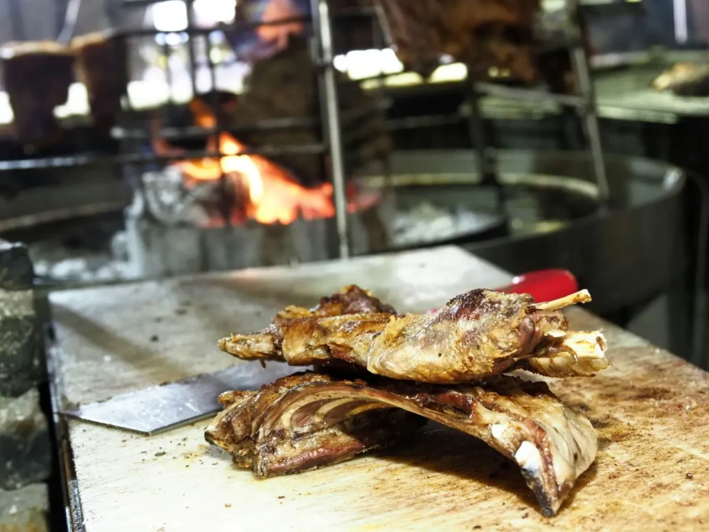 Τα κρέατα δεν προέρχονται από το κυνήγι, αλλά, εδώ και 14.000 χρόνια, μετά την Αγροτική Επανάσταση, είναι εκτροφής. Ευτυχώς, γιατί τα σφάγια που μπαίνουν αντίκρυ στη ζωντανή φωτιά πρέπει να είναι παχιά, και να έχουν λίπος να κάψουν για να μην στεγνώσουν ή καούν τα ίδια. Γι’ αυτό προτιμούν αρνί ή «κωλοπετσωμένο ζυγούρι χρονιάρικο». Όλα αρχίζουν από τον τεμαχισμό του σφαχτού, περίπου στη μέση, αφήνοντας τρία πλευρά προς τη μεριά των νεφρών, όντως προς τα μεριά. Αλλιώς σουβλίζεται το μπροστάρι και αλλιώς το μερί. Για να έχουν ομοιόμορφο πάχος και να ψηθούν σωστά, όλα τα τεταρτημόρια του αρνιού ανοίγονται.