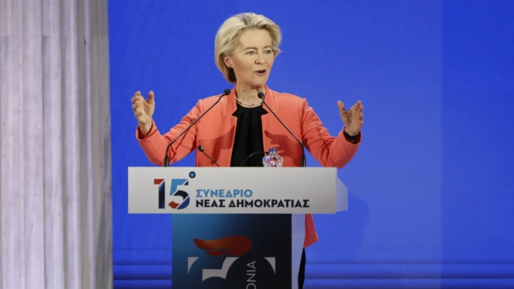 Την πρόοδο της Ελλάδας εξήρε η Ούρσουλα φον ντερ Λάιεν, μιλώντας από το βήμα του 15ου συνεδρίου της ΝΔ, απ’ όπου ξεκίνησε και την εκστρατεία της, από τότε που έλαβε το χρίσμα του ΕΛΚ για μια δεύτερη θητεία ως πρόεδρος της Κομισιόν.