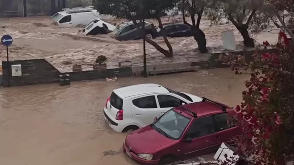 Νωρίτερα, εκδόθηκε μήνυμα μέσω του 112 που γνωστοποιούσε στους κατοίκους του νησιού την απαγόρευση μετακίνησης με οχήματα στο οδικό δίκτυο λόγω εκδήλωσης έντονων καιρικών φαινομένων.
