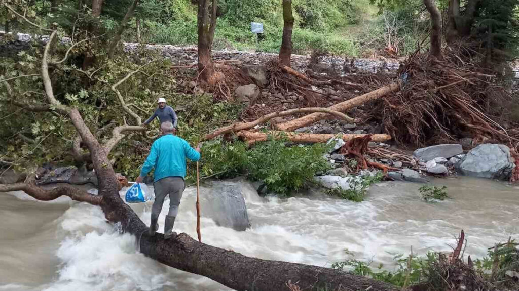 Κακοκαιρία Daniel: Πέρασε το ποτάμι με κορμό