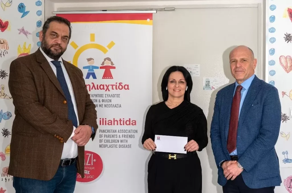 Σπουδαία κίνηση από τις Μινωικές Γραμμές. Ταξιδέψαμε για την αλληλεγγύη και την αγάπη, ενισχύοντας τη δράση του Παγκρήτιου Συλλόγου Γονέων και Φίλων Παιδιών με Νεοπλασία «Η Ηλιαχτίδα». Σε συνέχεια της υλοποίησης της καμπάνιας Κοινωνικής Ευθύνης «Ταξιδεύουμε για καλό σκοπό», με κεντρικό άξονα της δράσης «1 εισιτήριο à 1 ευρώ à 1 πράξη αγάπης», η MINOANLINES προσέφερε €1 από κάθε εισιτήριο στα δρομολόγια που πραγματοποιήθηκαν στις 24 και 30 Δεκεμβρίου στη γραμμή ΠΕΙΡΑΙΑΣ – ΜΗΛΟΣ – ΗΡΑΚΛΕΙΟ και αντίστροφα. Η απόδοση της δωρεάς ύψους €5,000 πραγματοποιήθηκε στο πλαίσιο συνάντησης του κ. Λουκά Σιγάλα, Διευθύνοντος Συμβούλου της MINOANLINES, με την κα Μαρία Ευστρατίου, Πρόεδρο ΔΣ της «Ηλιαχτίδας», στον Ξενώνα Φιλοξενίας «η Hλιαχτίδα», που βρίσκεται στο Πανεπιστημιακό Γενικό Νοσοκομείο Ηρακλείου (Πα.Γ.Ν.Η.), παρουσία του Αναπληρωτή Διοικητή του Πα.Γ.Ν.Η. κου Στέλιου Κτενιαδάκη.