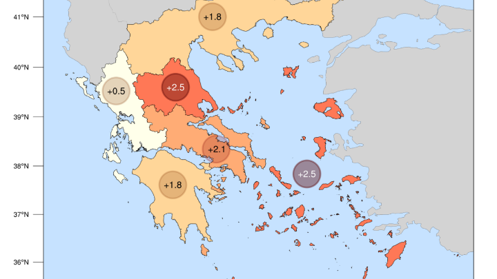 Η μέση τιμή των μέγιστων ημερήσιων θερμοκρασιών τον φετινό Νοέμβριο κυμάνθηκε σε ακραία υψηλά επίπεδα σχεδόν στο σύνολο της χώρας, σε σχέση με τον μέσο όρο της περιόδου 2010-2019, σύμφωνα με το δίκτυο 51 μετεωρολογικών σταθμών του meteo.gr του Εθνικού Αστεροσκοπείου Αθηνών (ΕΑΑ).