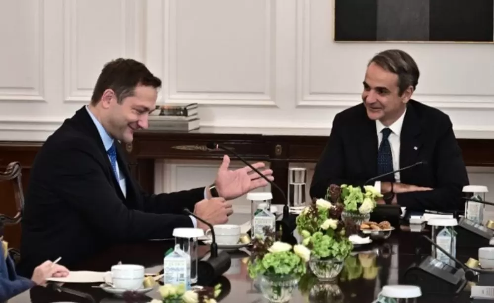 Ο πρωθυπουργός Κυριάκος Μητσοτάκης συναντήθηκε στο Μέγαρο Μαξίμου με τον Ευρωπαίο επίτροπο Γεωργίας και Τροφίμων Christophe Hansen, ο οποίος επισκέπτεται την Ελλάδα στο πλαίσιο της περιοδείας που πραγματοποιεί στα κράτη-μέλη της ΕΕ.