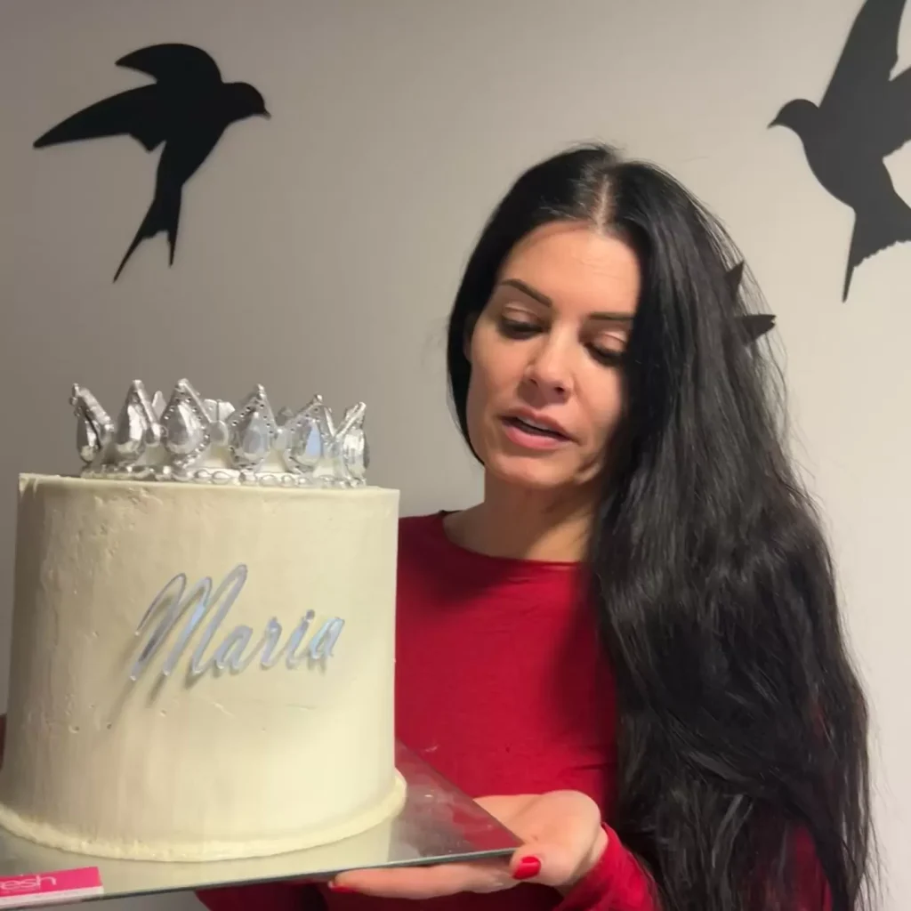 Η οικοδέσποινα μαζί με την υπόλοιπη παρέα είχαν ετοιμάσει μία έκπληξη στην Μαρία Κορινθίου και αυτή ήταν μία λευκή τούρτα με ένα στέμμα και το όνομά της. Η ηθοποιός, φορώντας ένα μακρύ φόρεμα σε βαθύ κόκκινο, έσβησε το κεράκι της με ένα μεγάλο χαμόγελο. Τα ξημερώματα της Τρίτης, μοιράστηκε στιγμιότυπα στον λογαριασμό της στο Instagram, θέλοντας να ευχαριστήσει τους φίλους της για την έκπληξη.