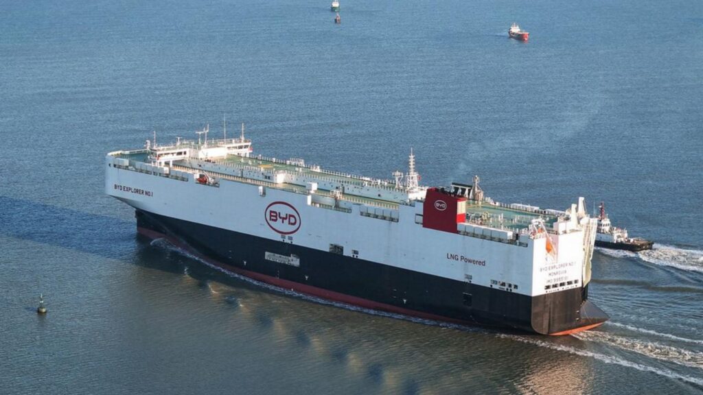 Πρόκειται για το BYD Explorer No. 1, το πρώτο κινεζικό πλοίο που σχεδιάστηκε για τη μεταφορά εγχώριας κατασκευής ηλεκτρικών ΙΧ στο εξωτερικό, και διευκολύνει τα σχέδια της αυτοκινητοβιομηχανίας για κυριαρχία σε παγκόσμιο επίπεδο.