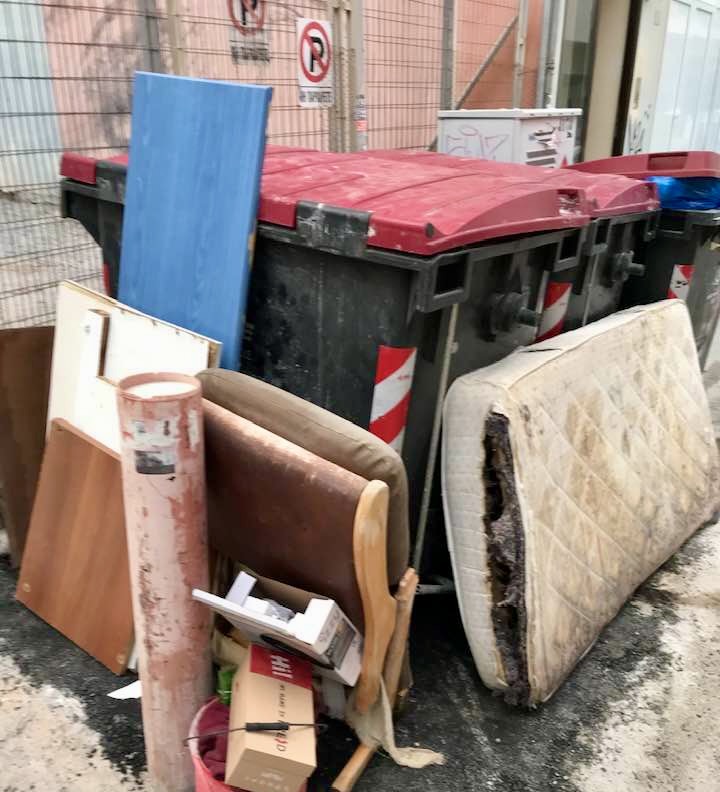 Καμένα και πεταμένα στρώματα κάτω ακριβώς από νέο ξενοδοχείο 5 αστέρων πολυτελείας (εκεί που ήταν το Ιπποκράτειο), σπασμένα πεζοδρόμια, ανύπαρκτες προσβάσεις για ΑμεΑ και γονείς με καρότσι, συνθέτουν το σκηνικό της απόλυτης κατάντιας.