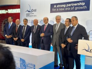 Δείτε φωτορεπορτάζ από την εκδήλωση. Πραγματοποιήθηκε η εκδήλωση ολοκλήρωσης της διαδικασίας μεταβίβασης του πλειοψηφικού ποσοστού του μετοχικού κεφαλαίου του Οργανισμού Λιμένος Ηρακλείου στην κοινοπραξία των εταιρειών “Grimaldi”   και “Μινωικές Γραμμές”. Η εκδήλωση, που κάλυψε ζωντανά το «Θέμα Κρήτης 103.1», πραγματοποιήθηκε στον Επιβατικό Σταθμό Ακτοπλοϊας Λιμένος Ηρακλείου από το Ταμείο Αξιοποίησης Ιδιωτικής Περιουσίας του Δημοσίου, εταιρεία μέλους του υπερταμείου. Δείτε… στιγμές από την εκδήλωση: