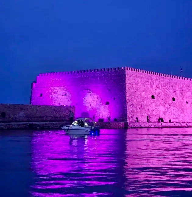 Η διοίκηση του Οργανισμού Λιμένος Ηρακλείου, προχώρησε στη συμβολική φωταγώγηση του μνημείου θέλοντας να στείλει το δικό της μήνυμα πρόληψης.