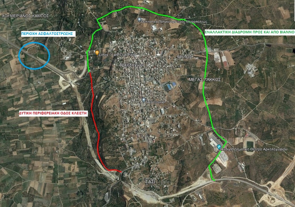 Από αύριο και για τέσσερις συνολικά μήνες αναμένεται να διακοπεί η κυκλοφορία μέσω της δυτικής περιφερειακής οδού του Αρκαλοχωρίου.