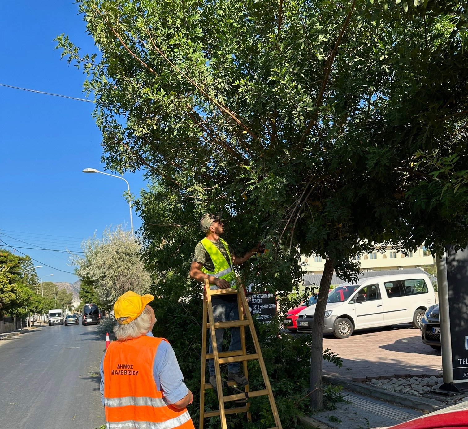 Συνεργεία της Υπηρεσίας Πρασίνου υπό την εποπτεία του Αντιδημάρχου Γρηγόρη Περυσινάκη και του Προέδρου της Τοπικής Κοινότητας Γαζίου Βαγγέλη Παρασύρη, προχώρησαν στο κλάδεμα των δέντρων σε σημεία που είχαν υποδείξει επαγγελματίες οδηγοί διευκολύνοντας την κυκλοφορία των λεωφορείων αλλά και μεγάλων οχημάτων που καθημερινά διέρχονται από τον κεντρικό δρόμο της Αμμουδάρας.