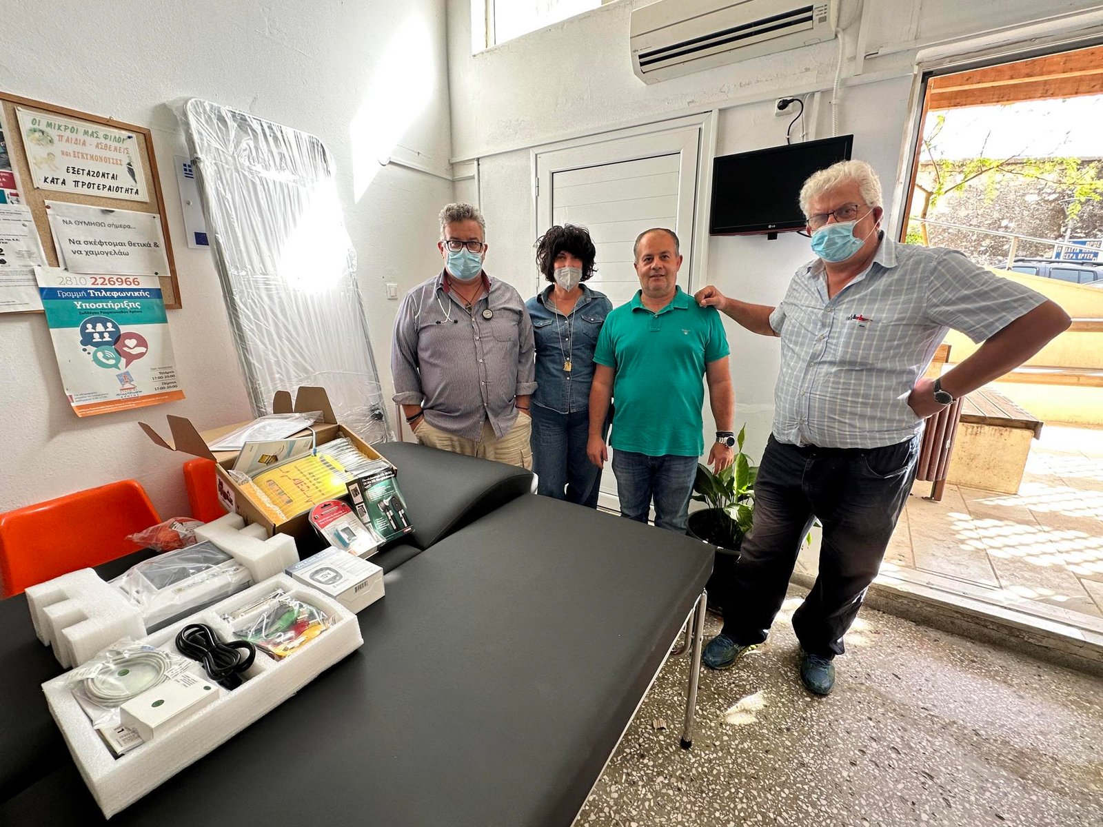 Συγκεκριμένα στο Αγροτικό Ιατρείο παραδόθηκαν απινιδωτής που δεν υπήρχε, ένας τελευταίας τεχνολογίας καρδιογράφος, ωτοσκόπιο, οξύμετρο, και μετρητής σακχάρου καθώς και νέα εξεταστικά κρεβάτια και ιατροφαρμακευτικό υλικό.