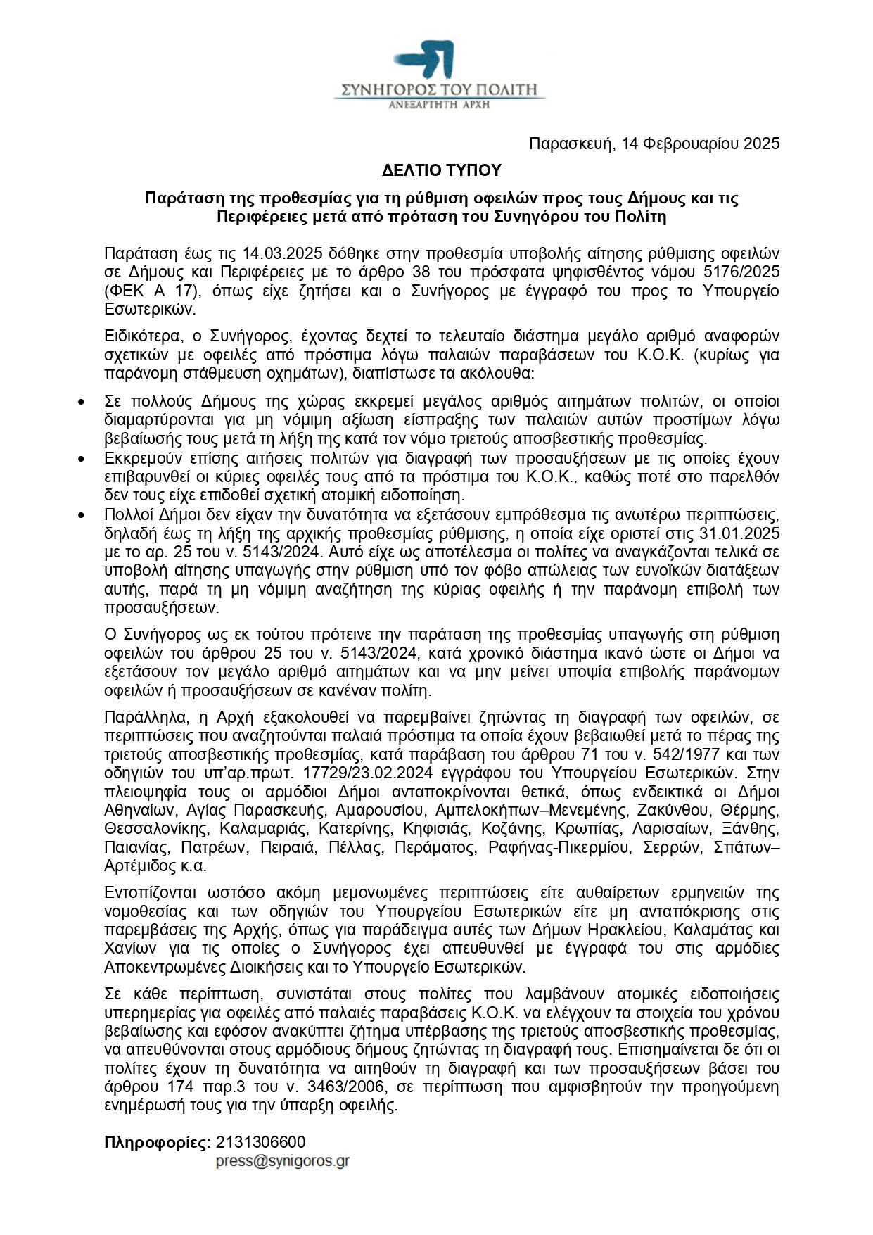 Παρανομίες σε εισπράξεις προστίμων, καταλογίζει με εγκύκλιο του ο Συνήγορος του Πολίτη, στους δήμους Ηρακλείου, Χανίων και Καλαμάτας. Ήδη το υπουργείο Εσωτερικών είναι ενήμερο από το Συνήγορο του Πολίτη και φαίνεται πως μετά τις αποκαλύψεις αυτές, θα πάρουν φωτιά οι συνεδριάσεις του Δημοτικού Συμβουλίου στο Ηράκλειο, με τον επικεφαλής της παράταξης Ηράκλειο η Πόλη μας Μιχάλη Καραμαλάκη, να προσανατολίζεται σε άμεσες ενέργειες.