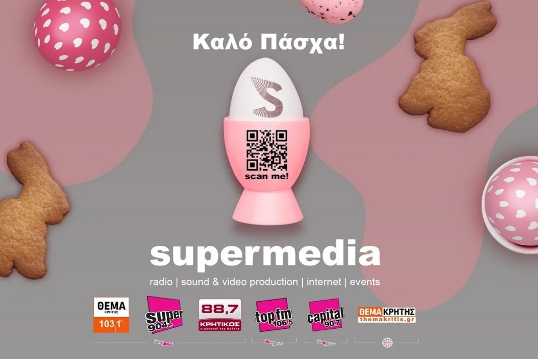 Όλοι εμείς από το ΘΕΜΑ ΚΡΗΤΗΣ 103.1, τον SUPER 904, τον ΚΡΗΤΙΚΟ 88.7, τον TOP FM 106.5 για τα Χανιά, τον CAPITAL 90.7 για το Ρέθυμνο και το themakritis.gr για την Κρήτη, την Ελλάδα και τον κόσμο, σας ευχόμαστε Χριστός Ανέστη και Καλό Πάσχα με χαρά, υγεία, ελπίδα κι αγάπη!